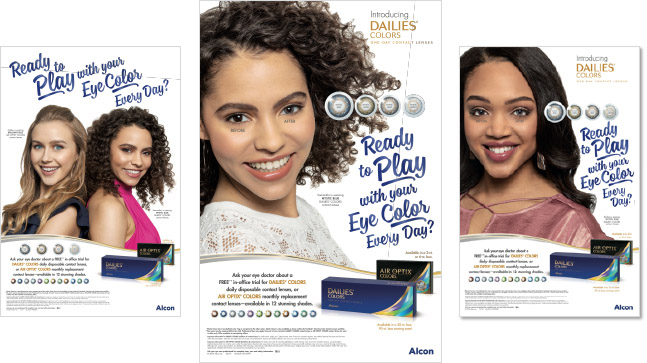 Our strategy: give beauty lovers “permission to play.” The campaign, Ready to play with your eye color every day?, launched with a broadcast TV spot, print ads, and HCP focused materials.